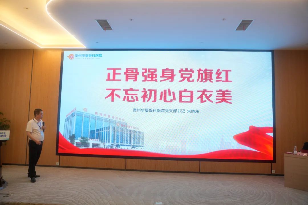 开幕式圆满结束后,大会随即进入学术论坛环节。首场由朱晓东书记带来题为"正骨强身党旗红,不忘初心白衣美"的专题党课,他通过生动的案例分享,系统阐述了贵州华夏骨科医院"以党建促发展"的实践经验,深刻诠释了"党建强则发展强"的管理理念,为论坛奠定了思想引领的基调。